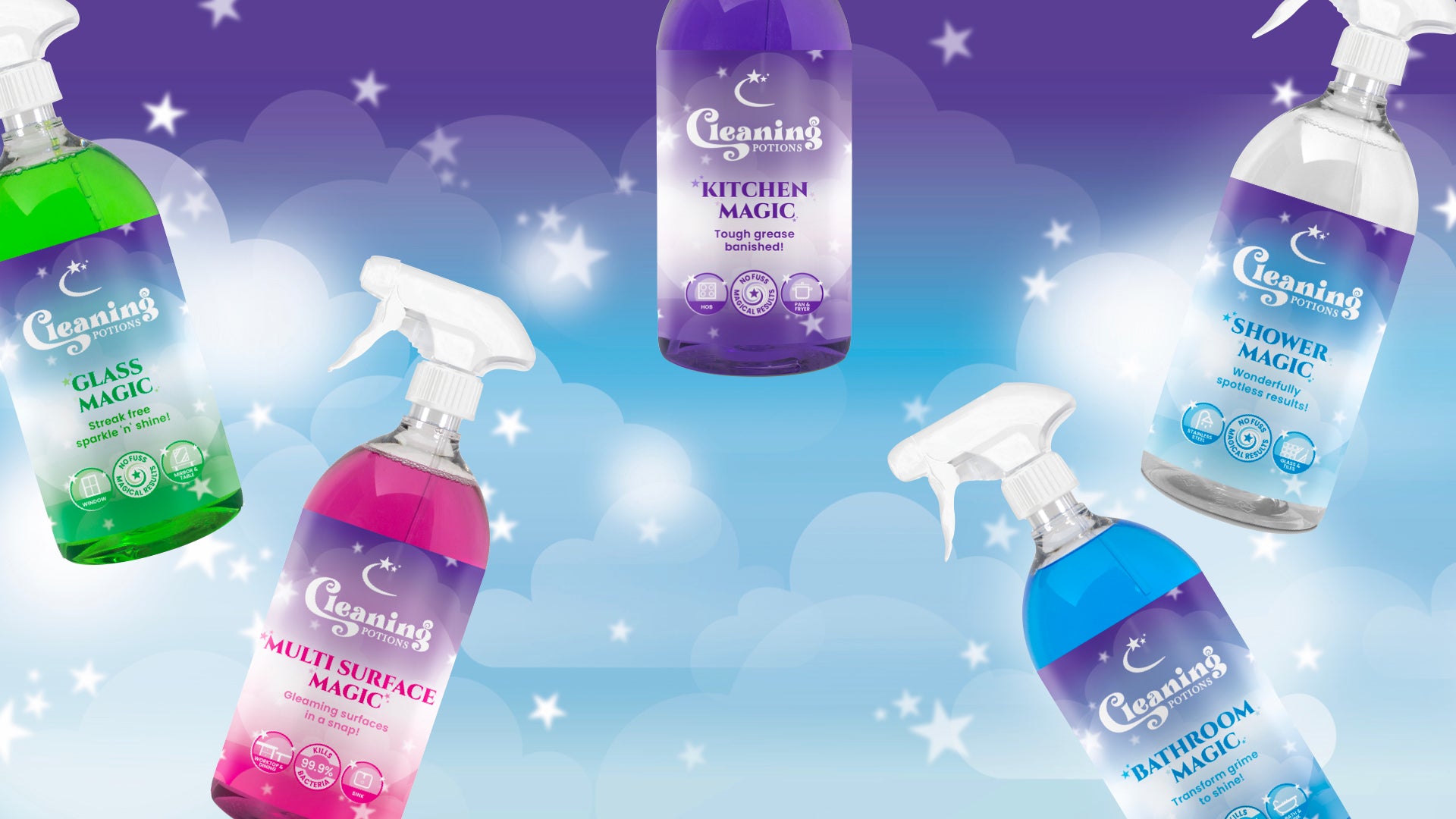 Cleaning Potions are filled with magical ingredients with a simple goal in life: to make your cleaning jobs easier and more enjoyable with sparkling effortless results. They're not just your average cleaning products, our Cleaning Potions are like having a team of mystical helpers right in your hands, ready to take on dirt and grime!